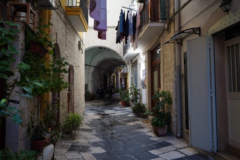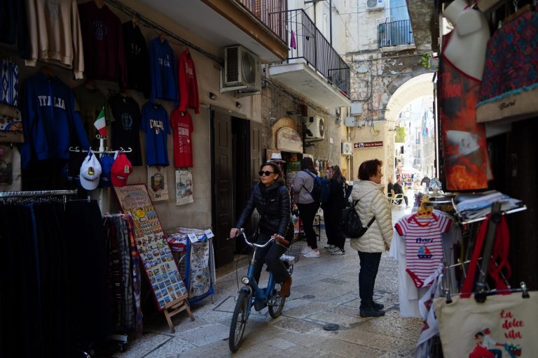 Und die Altstadt (Bari Vecchia) ist wirklich schön, Kasbah-ähnlich, bei vielen Häusern stehen die Türen offen, Diskussionen werden auch über mehrere Etagen hinweg Richtung Gasse geführt, (stimmmäßig siegen hier eindeutig die Frauen!) Der frisch abgespritzte Steinboden glänzt (dank Jahrhunderten der Abnutzung) edel – vor allem, wenn abends die Lichter angehen… Und in den verwinkelten Gassen verläuft man sich gerne, es gibt immer wieder neue Entdeckungen!