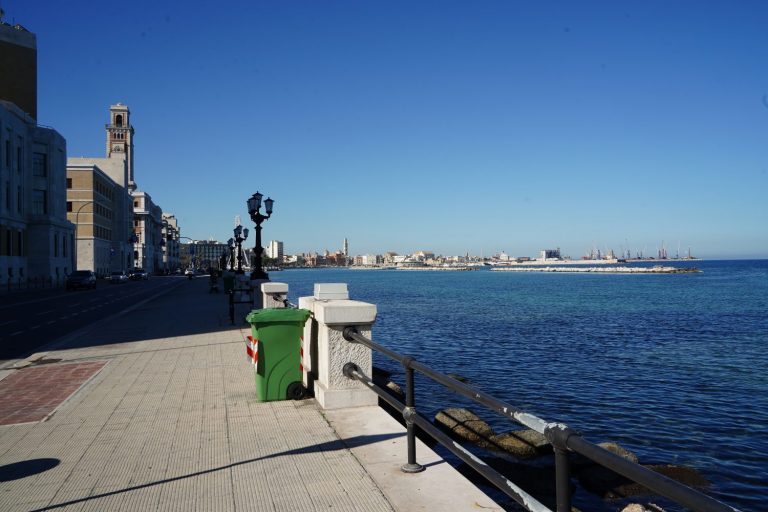 Und dann die „Neustadt“ – wieder viele Prachtbauten, einige Dachterrassen Richtung Meer, von denen ich gerne träume, Palmen überall, der blaue Himmel… Mittags Orecchiette – die Pasta der Region – in einem kleinen Straßenbistro essen, ein Schlückchen Wein – die Welt ist wunderbar! Die lange Strandpromenade soll eine der längsten Italiens sein und es ist wirklich schön, hier entlang zu flanieren und zu entspannen.