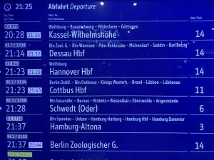 Bei einer 1/4 Std. Verspätung zuckt man kaum mehr, als es eine 1/2 Std. wurde, beteten wir für das Gleis gegenüber und dafür, keine Odyssee über Treppen hoch und runter zu haben, – aber kurz gesagt: es wurden im Laufe der Fahrt 90 Min, der Nachtzug hat natürlich nicht auf uns gewartet.
